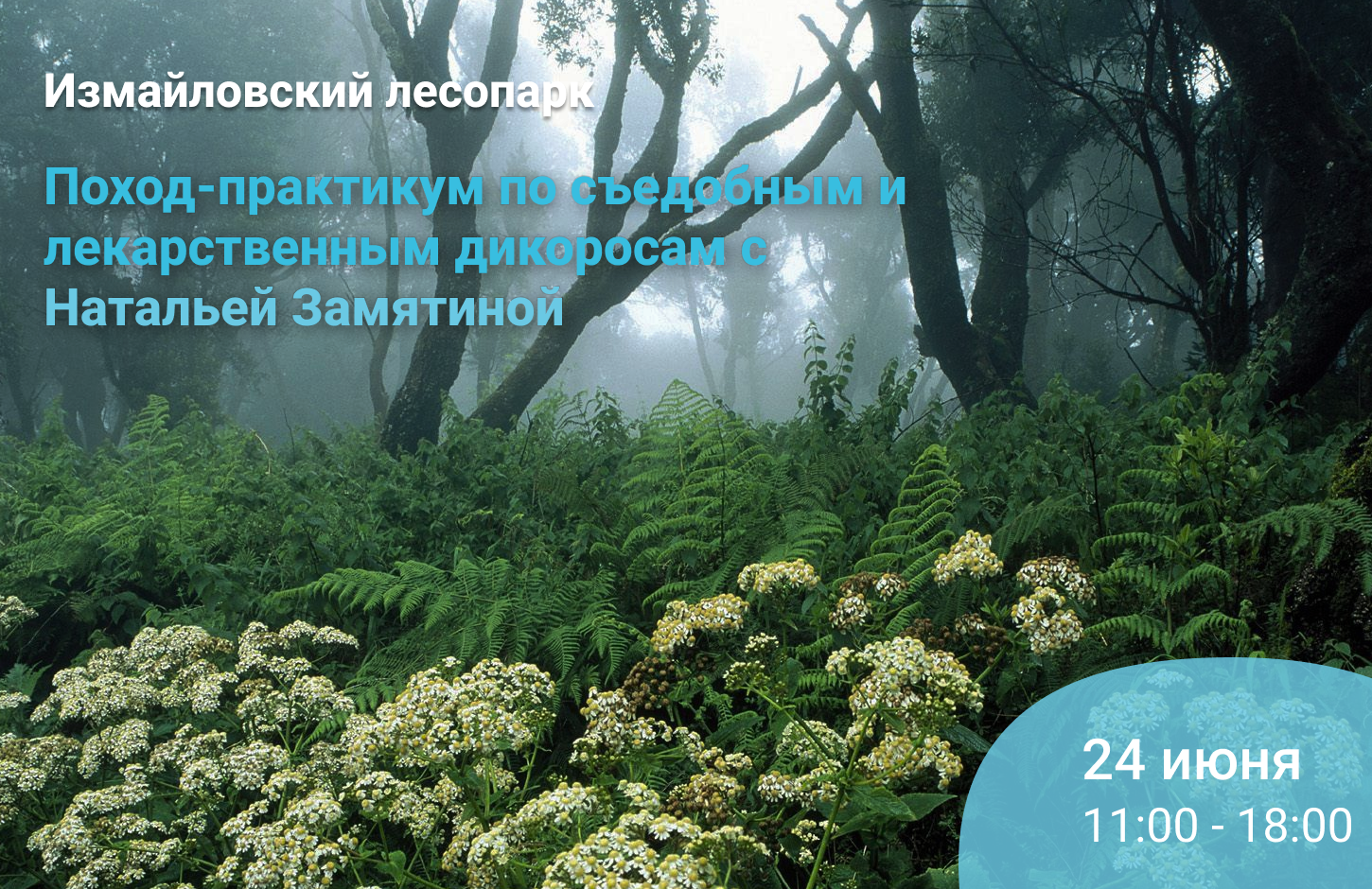 В субботу 24 июня проведем время в походе, на природе, в чудной компании с Валерией Букиной и Натальей Замятиной в городском лесопарке ООПТ Измайлово. Будем искать, определять, собирать и готовить на пикнике блюда от автора «Кухни Робинзона», это будет обед из трех блюд и напитка, созданных только из трав! В разгаре лета традиционно с 2014 года, в пору активного цветения трав и благоухания учимся в натурных походах различать, узнавать и есть, не бояться ядовитых/лекарственных. И если ранее мы почти всегда делали поход в загородных условиях, то ныне, при изобилии травяных фестивалей повсюду, мы сделали акцент на городскую среду и второй раз делаем поход в лесопарке Измайлово.