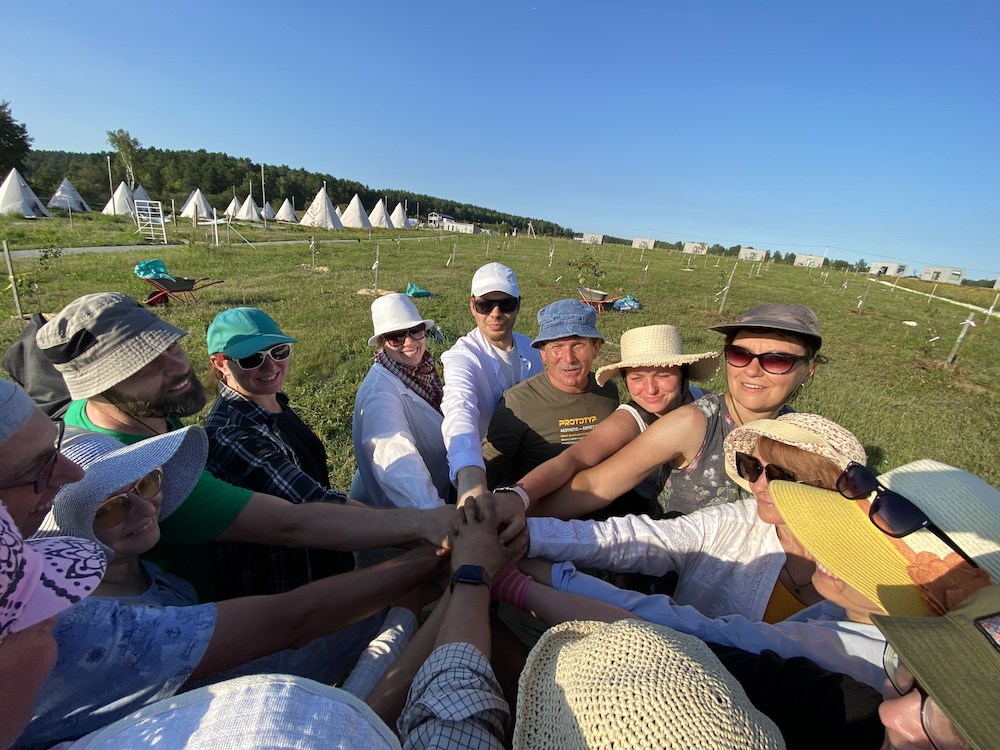 | III Учебно-волонтерская экспедиция Naturbook в новопосаженный сад фестиваля Дикая Мята | | | | 27 и 28 августа - воскресенье и понедельник | | | Дорогие коллеги и друзья и вы, новые, неведомые, но прекрасные добровольцы!Мы приглашаем провести приятный и полезный во всех отношениях опен-эйр в Арт- кэмп Дикая Мята в сообщество «новоявленных садовников» мегалюбимого Фестиваля! Поскольку за две экспедиции сформировались команды «забудни» и «завыходные», то в этот раз мы предлагаем даты, удовлетворяющие обоим запросам, то есть один день – 27.08 воскресенье, один – 28.08 понедельник Можно участвовать каким-то одним днём или оба дня. И нас, и тем более организаторов, потрясает факт приезда стольких не равнодушных (20 и 19 участников) и суперактивных людей! За две экспедиции на воодушевлении от удивительных фишек пермакультуры, садового братства и свободного труда мы провернули внушительный объем работ, невозможный для зарплатного рабочего. Совместные вкуснейшие обеды/ужины в кафе «Наша Птичка», воскресный концерт в Дачный клуб Тинькофф, костровые посиделки, бодрые восходы – сопутствующая обязательная романтика. Что удалось сделать :)Мы выпрямили, укрепили, поставили растяжки, пропололи, откопали место прививки, частично формировали кроны, замульчировали 160 яблонь. При этом мы успели кратко, но ёмко проговорить важные фазы роста и агротехники, роль работы с почвой, дать технику работы, показать признаки найденных заболеваний, рассказать о себе и подружиться.Те, кто приехал второй раз, увидели воочию эффект от проделанной работы: за две недели яблони окрепли, дали новые веточки длиной 10-15 см, старые веточки дали хорошие приросты, облиственность увеличилась, размер листовой пластины стал больше и новые листья абсолютно здоровые, без пятнистостей и повреждений. Внутри приствольного круга под мульчёй почва нормальной влажности и рыхлости. Яблони так дружно и мощно ответили на минимальное внимание к ним, такой у них мощный импульс жить и плодоносить, что даже нас это потрясло! Участники глубинно прочувствовали значимость своих рук, действий и родственность с саженцами, с которыми работали. Приглашаем совместными усилиями провести следующий этап помощи молодому саду-защиту от грызунов, обработку против инфекции и подготовку к зимовке, усиление зимостойкости и морозостойкости. Поможем саду укрепиться и пережить первую зимовку! Волонтерские экспедиции на «мятной» площадке -это практический вход в тему лесосада. В этом сезоне мы занимались обрезкой/формировкой/биозащитой и вот проводим серию волонтерских экспедиций с диагностикой, органик агротехникой и биологизированным уходом в первый период роста сада ПОКАЖЕМ- Как вести мониторинг молодого яблоневого и грушевого сада в августе, на какие признаки обращать внимание при диагностике состояния.